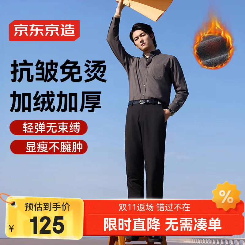 包邮 京东京造【加绒加厚】休闲裤男西裤子男士服装秋冬易打理西装裤 黑色2XL